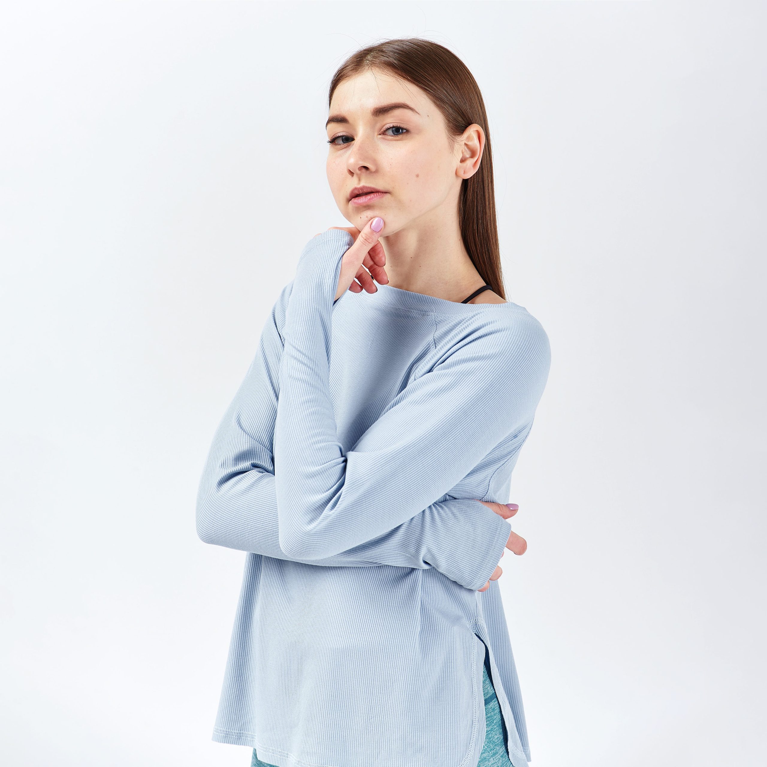 Blue Basic Athletic Long-Sleeved Shirt
