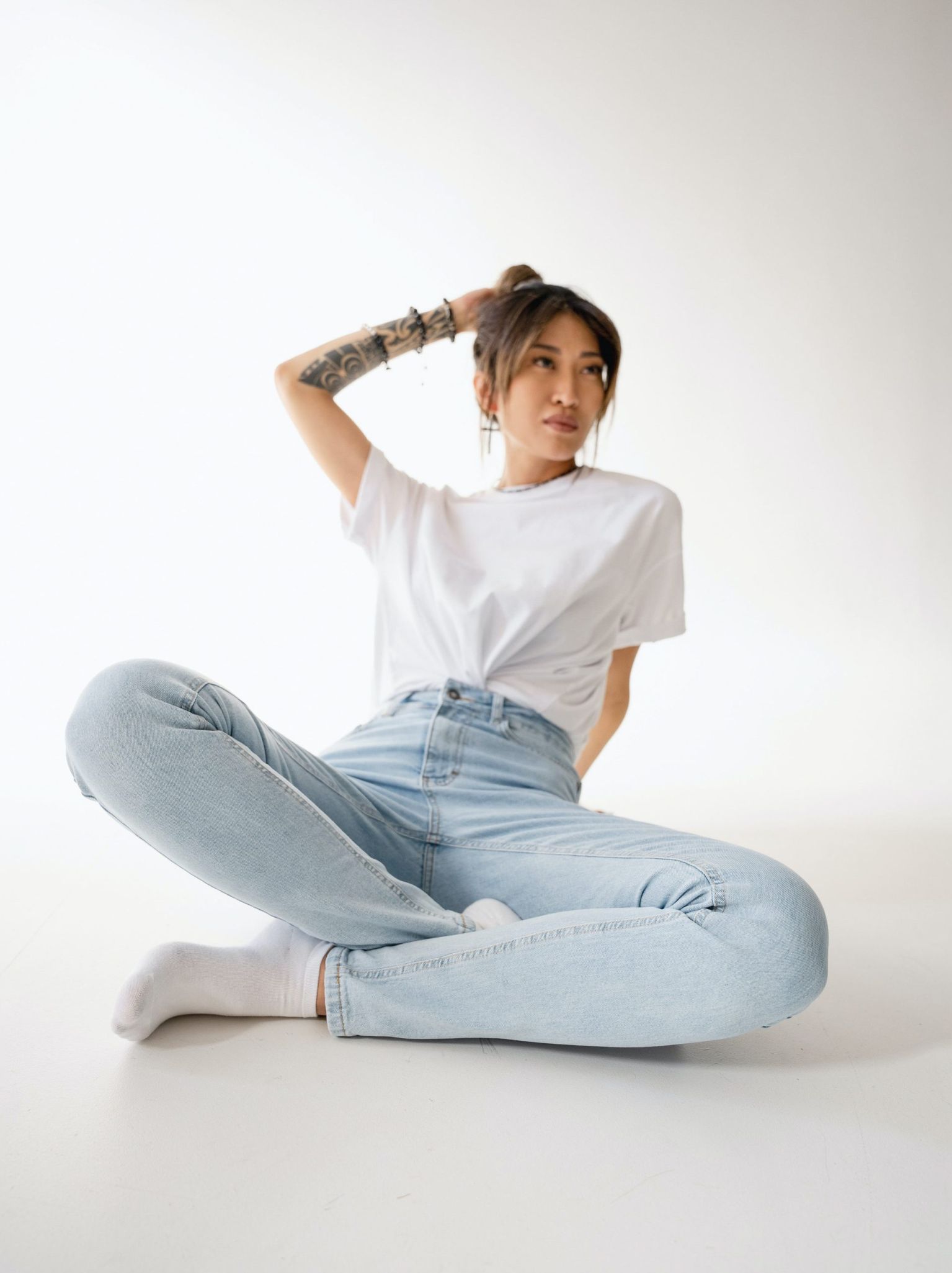 Mid-Waist White Jeans